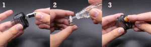 Lors de la première utilisation, attendez 5 à 10 minutes après remplissage pour permettre à la résistance de bien s’imbiber.